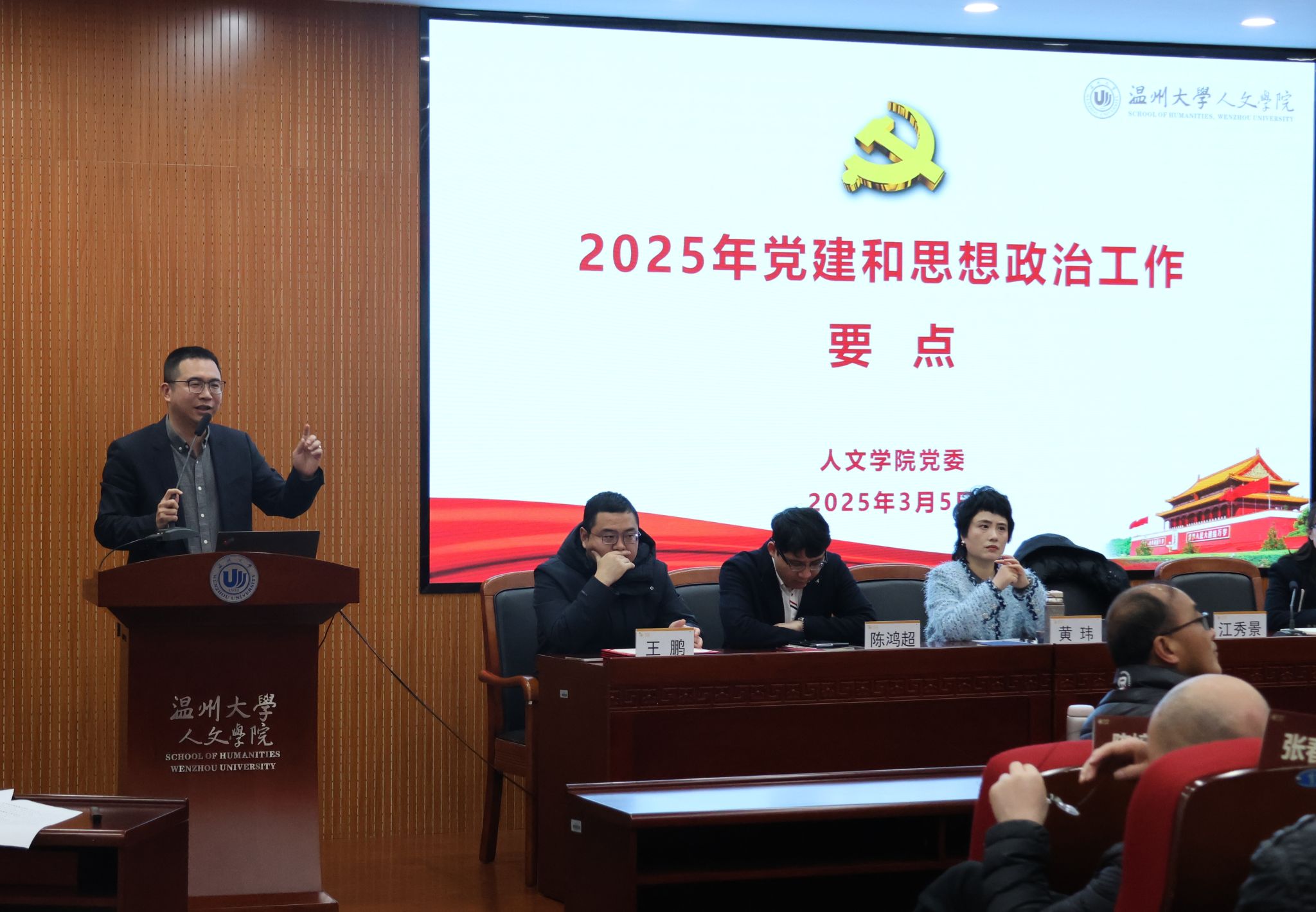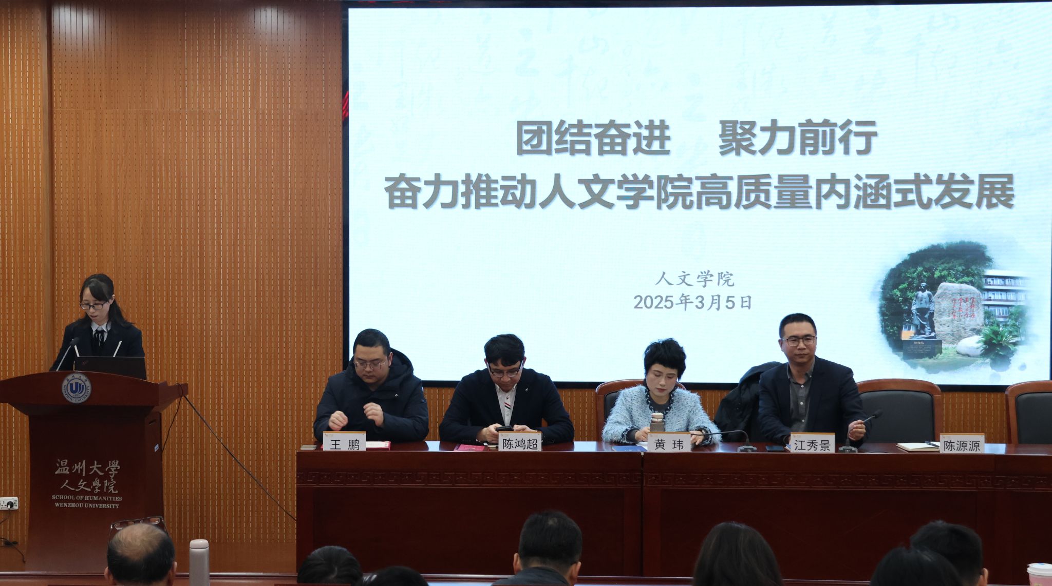2025年3月5日下午,九色視頻 在人文楼203报告厅召开2025年新学期全体教职工大会。会议由学院党委书记江秀景主持,学院领导班子及全体教职工共同参加。