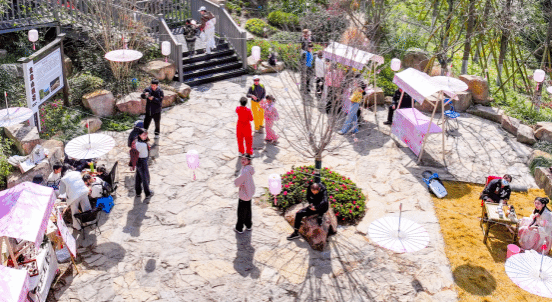 汉服爱好者身着精美服饰穿梭于樱花树下,既展现出汉服之美,也体现了对传统文化的传承与创新,吸引众多游客驻足,享受一段充满诗意的赏樱时光。