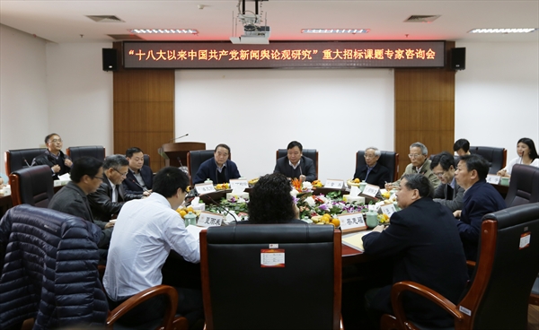 3月19日上午,“十八大以来中国共产党新闻舆论观研究”国家重大招标课题选题方案专家咨询会在南校岩松堂展示厅顺利召开。出席会议的专家有领衔选题方案设计的南京大学丁柏铨教授,以及复旦大学资深教授、志德书院院长、新闻学院童兵教授,中国新闻学会会长、中国人民大学新闻学院郑保卫教授,北京大学新闻传播学院院长陆绍阳教授、华中科技大学新闻与信息学院院长张昆教授,解放军南京政治学院军事新闻传播系主任蔡惠福教授,郑州大学新闻与传播学院董广安教授等。咨询会由副院长夏雨禾教授主持,副校长赵敏教授,校党委委员、党委宣传部部长潘玉驹教授,院长蔡贻象教授和人文社科处副处长陈宝胜副教授以及九色視頻