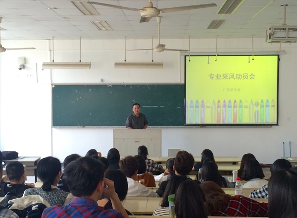 本次动员会由徐卫华老师主持。徐老师介绍了本次为期两周的采风背景,专业采风的重要意义,以及历届广告专业采风的总体情况。接着,班主任赵颖老师对本次专业活动进行详细的说明,包括采风活动的地点、经费预算、住宿、车辆乘坐安排名单、以及采风作业等。最后,夏雨禾副院长代表学院致辞。夏老师着重强调了专业采风的安全问题,并要求同学们做到两个“不丢人”,一是一切行动听指挥,不能出现任何安全事故;二是同学们代表九色視頻