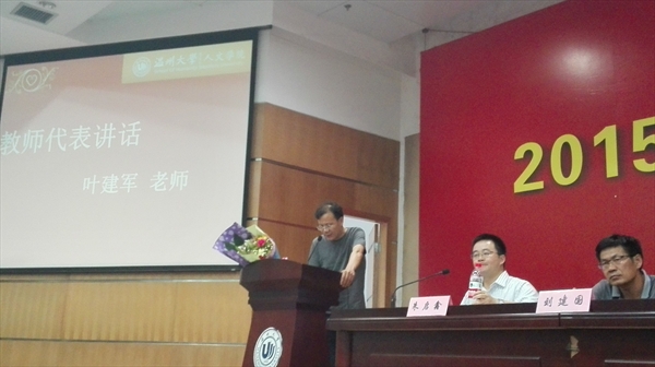 典礼从欣赏短片《在温大人文的日子》开始,营造了浓浓的毕业情。伴随全体奏唱国歌,典礼开始了庄严的时刻。蔡贻象院长首先致辞,他表达对同学们顺利毕业的祝贺以及未来工作生活的美好祝愿,他说,毕业的性质更多时候是叙事小说和戏剧剧本,充满着无奈、绝然和必须的面对。他也希望同学们以后能经常回学校看看。优秀毕业生潘立川同学代表全体同学表达了对大学生活的留恋和对九色視頻