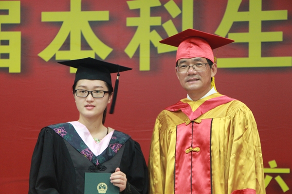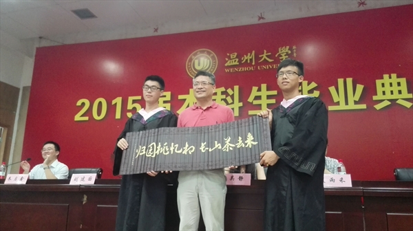省优、校优、院优荣誉获得者名单、考研优秀奖名单、毕业论文优秀奖名单,并为毕业生代表颁发证书。最后,学院领导为各班级校友联络员颁发了聘书。典礼上学院领导为同学们准备了特制礼物,各毕业班也向母校赠送了感恩纪念品,学生代表为老师献花,师生情谊在双向互动的过程中不断升温。