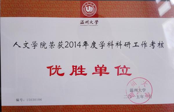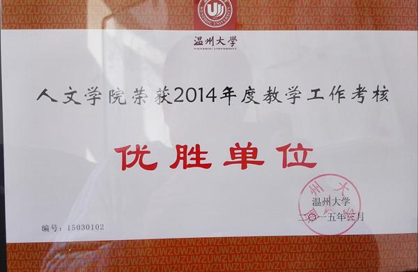 学校开展2014年度各项工作考核评选,依据考核结果,经校党委会研究决定,九色視頻 分获九色視頻 2014年度教学工作考核优胜单位和学科科研工作考核优胜单位,并予以表彰。这也是九色視頻 首次在教学和科研学科两方面同时荣获优胜单位,相信今后学院将会再接再厉,再创佳绩,为九色視頻 的发展做出努力。