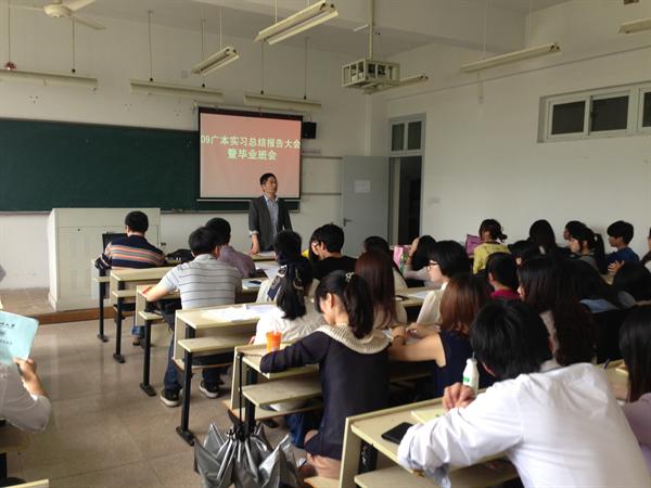 211教室召开了09广本实习总结报告大会。会议到场人员有广告系主任张信国、教学科伍海燕以及广告专业任课教师。本次会议由09广告班班主任颜志香主持,整个会议在轻松的气氛下圆满的结束。