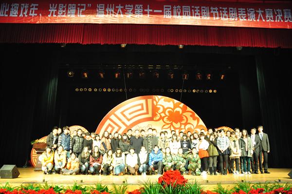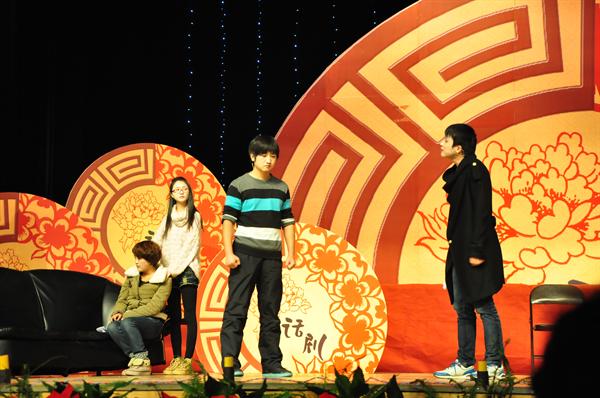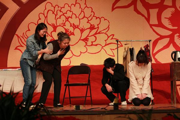 6点30分,比赛正式开始。帷幕轻启,古韵悠扬,学院艺术团的同学带来的舞蹈《小城雨巷》映入观众眼帘。光艳的一闪,长眉,妙目,手指,腰肢,油纸伞;髻上的花朵,腰间的褶裙;旋转跳跃,轻云般慢移,旋风般疾转,像一朵朵的红花似地穿成花串。在满堂喝彩声中,用如此精彩的开场舞拉开了话剧节决赛的序幕。有讲述母爱、父爱的《母亲》、《再爱我一次》剧照的悲情演绎,也有以喜剧的方式演绎爱情的《爱要大声说出来》,更有由三位女生演绎的女兵军旅生活的《提意见》剧组同样让场下一片欢声笑语。而最后话剧《明天》由一棵树见证了时间飞快的流逝。而当你发现时间是个贼,它早已偷光你的选择。想来《实验话剧放开我》带给观众的应该是一种压抑的腔调:一个梦想当导演的做上帝的疯子在荒诞与絮乱中也被命运这个上帝扼住了咽喉。让全场的观众们陷入了思考的漩涡。