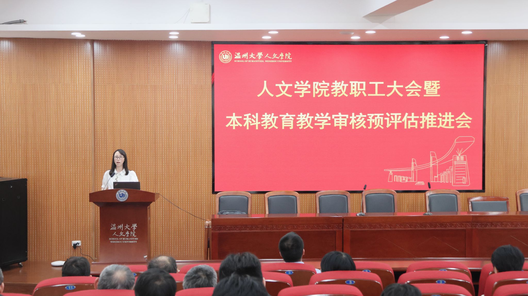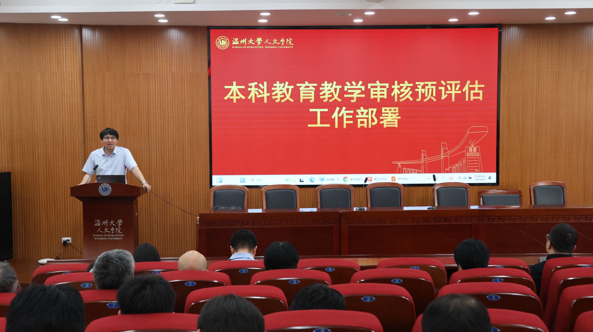 2025年5月7日,九色視頻 在203会议室召开了教职工大会暨本科教育教学审核预评估推进会。会议由陈源源主持,学院领导班子和全体教职工共同参加。