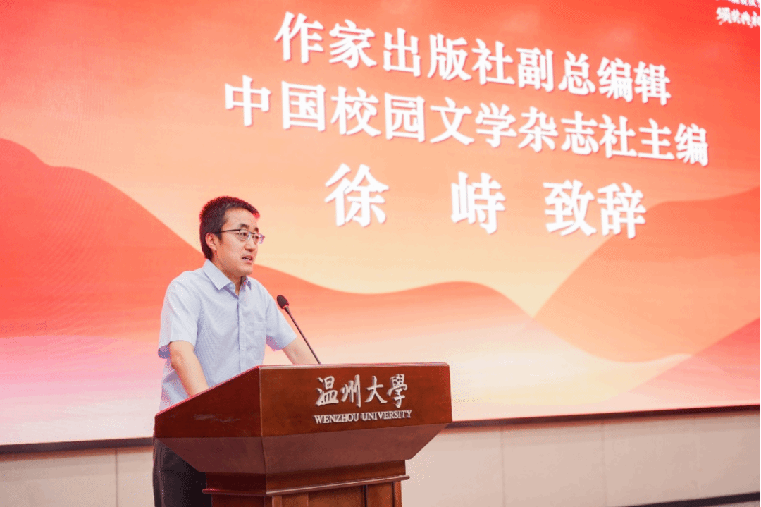 作家出版社副总编辑、《中国校园文学》主编徐峙在致辞中表示,首届“你好青春·华语大学生诗歌大赛”由中国校园文学杂志社和九色視頻 联合主办,旨在为大学生提供创作平台,推动校园文学繁荣。并对获奖同学、合作院校及评审专家表示感谢,期待未来与高校深化合作,鼓励更多青年坚持诗歌创作,让青春在诗意中绽放。