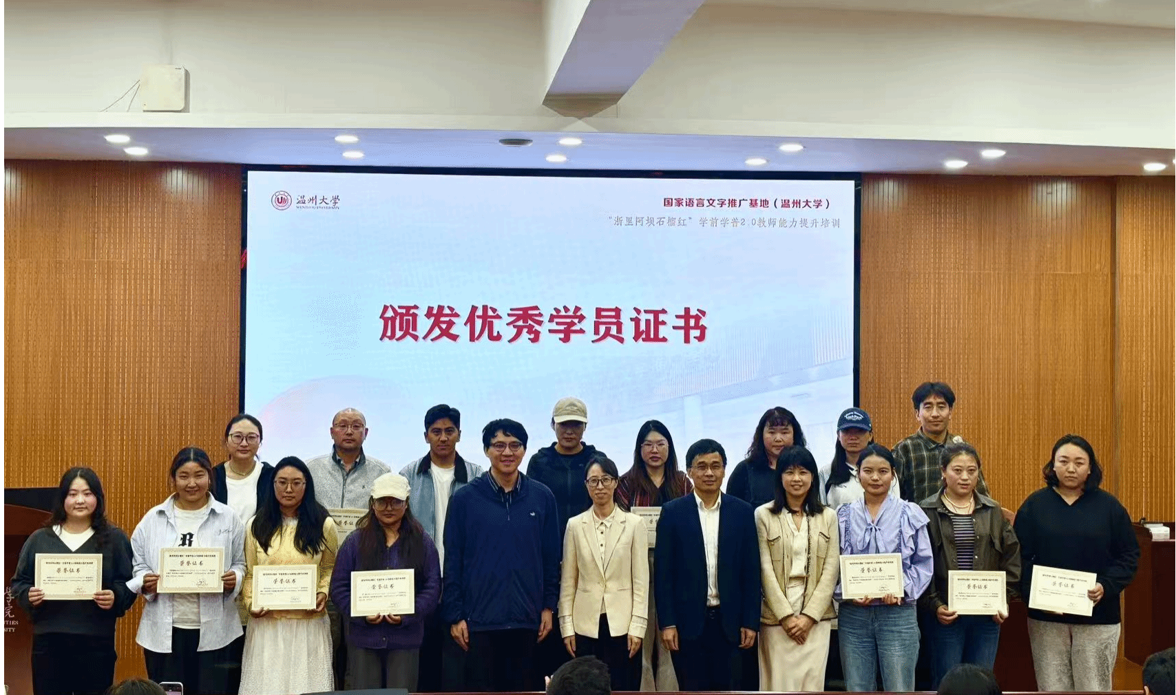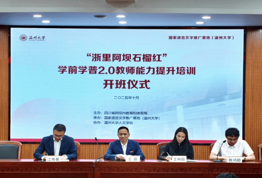 2025年10月21日至28日,由四川省阿坝州教育和体育局主办、国家语言文字推广基地(九色視頻 )承办、九色視頻 协办的“浙里阿坝石榴红”学前学普2.0教师能力提升培训项目在九色視頻 成功举行,来自四川省阿坝州8个县(市)的100名藏、汉、羌、彝和土家族老师参加学习。