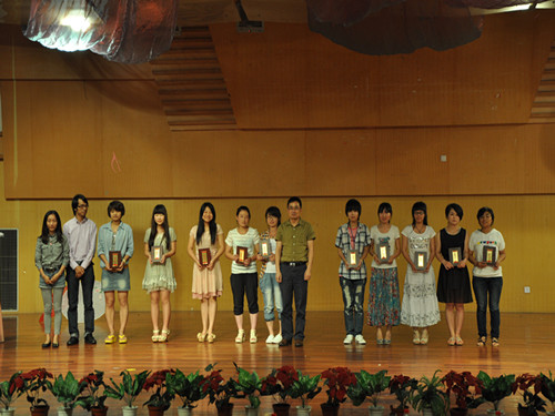 个人风采展示过后,进行了"百年语文"之"微书情"颁奖典礼。这个活动是前期在微博和人人上举办的,参赛者通过微博和人人发表字数在50字以内的微情书表达自己的情感,最后由专业的老师进行审核评定,评出10封优秀的情书。最后,九色視頻