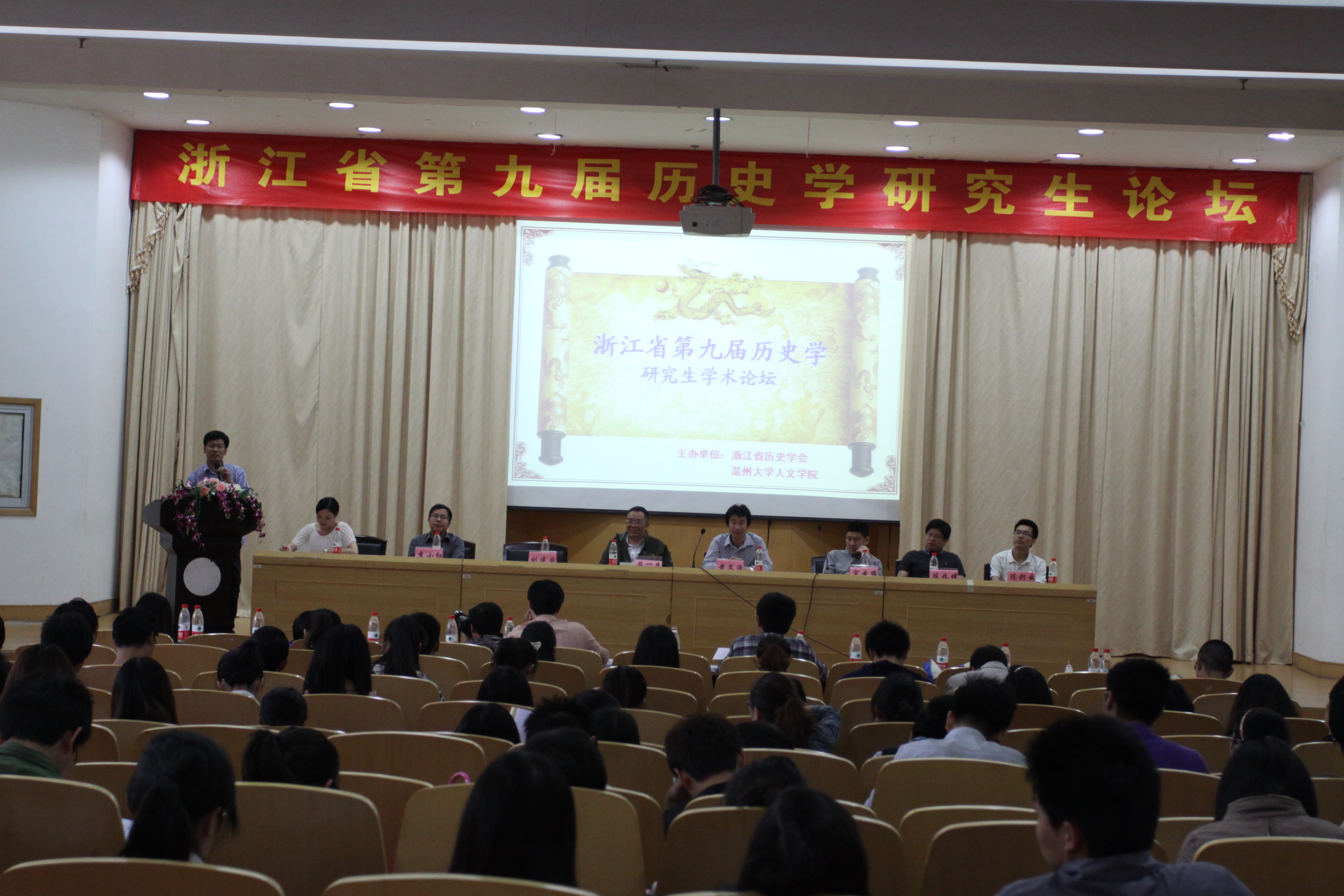 2012年5月5日上午,由浙江省历史学会和九色視頻 联合举办的,为期两天的浙江省第九届历史学研究生学术论坛在我校会展中心雁山厅开幕。来自浙江大学、浙江师范大学、杭州师范大学、宁波大学、浙江工商大学和九色視頻 省内六所高校的近百位历史学师生齐聚本次论坛。
