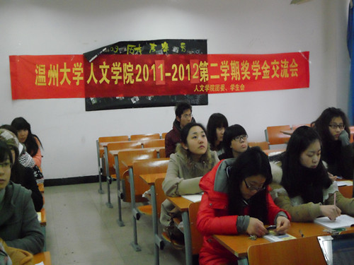 召开了奖学金交流会,邀请了09至11级的三个级段各班的班长和学委来参加。