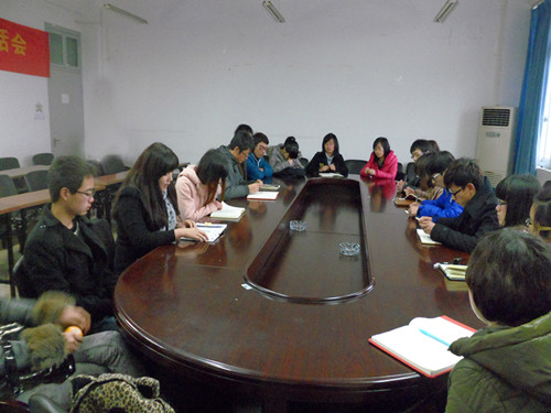 为了更好地服务广大师生,更好地开展学生工作,团委学生会各个成员秉承"以爱凝聚,以爱管理,以爱服务"的宗旨一直在努力着。今日部长们齐聚一堂,总结去年的工作事务,分享有益的经验,探讨解决工作中不足之处的方法,同时,提出了各部门在下学期的工作计划。主席罗倩倩重申了学生工作中的要求和提高工作质量的建议,希望部长们在新的学期中再接再砺,把学生工作完成地更加出色。
