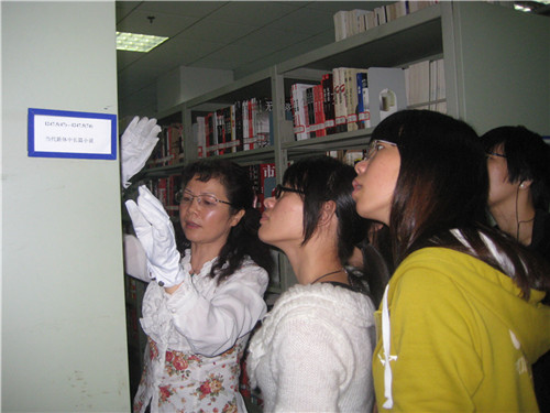 1点半,志愿者们来到二楼借阅室,在图书馆陈老师的带领和指导下,进行了分组,每个人都有专门负责的书架。同学们带上白手套,俨然一个认真专业的管理者。虽然每本书都有编号和相应的位置,但是有些同学在借阅归还时,错放了,这会导致下一位读者找不到这本书,这次图书整理活动的目的就是要找出这些迷路的书籍,并将图书整齐排放,方便广大同学的借阅。