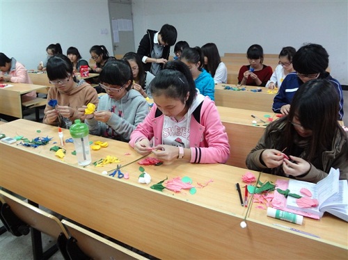 一周一课的手艺培训班照常进行。讲师茅静飞与学员们在人文楼102教室,共同演绎了一场浪漫的纸玫瑰制作秀。