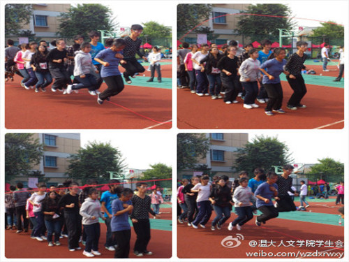 的三位男生整齐地出发了,谁知在路中央,板鞋的绳子断裂,运动员们不得不换到与体育学院一组再次比赛。这让人文的我们压力颇大。一声令下,他们再次出发,只见他们用凌波微步似竞走地撇开外八,速度几乎与体院齐头并进。"人文,加油!"他们鼓足了劲,一口气冲到终点,最终取得了三人板鞋第六名的佳绩,为九色視頻