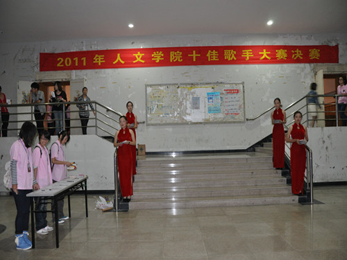 场光逐渐亮起,追光,彩灯闪耀,10名身穿白色T恤和黑色短裙的艺术团女生已在灯光下如花绽放了。随着一曲劲爆的《Pocker Face》,她们便开始随着节奏踏起轻捷的舞步,抬起手臂,下蹲,扭腰,转身,手臂交叉,疾转,弯腰,一连串的舞步整齐而妩媚柔美。肩的微颤,颈的轻摇,每一个舞姿便宛如生命里的一次绽放,充分展现了女生的魅力与青春的活力。