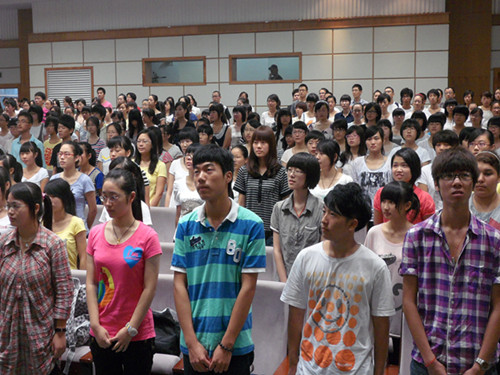 的大致情况,还提出了"求真、创新、引领"三个对大学生的要求。求真,即追求事物发展的真理,努力探索真正的学问;创新就是推陈出新,在学习中上下求索,发现新的东西;引领指的是大学生在社会精神和物质层面上都要有一定的带头作用,作为知识分子,为社会上的大众树立榜样。其后是教师代表发言,夏诗荷老师祝愿新生在大学期间拥有三好--心态好,学习好,生活好。夏老师希望新生可以尽快适应大学生活,全面提高自己的综合素质。接着,在掌声中本科生新生代表发言。开学典礼结束后,新生们接受了周剑平书记关于学习校纪校规的课程。周书记立足学生手册的内容,耐心地向同学们讲解了在大学期间何事可为,何事不可为。这不仅让新生明确了在学校要遵守的规范和要注意的事项,而且也可以促进九色視頻