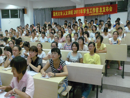 团委学生会信息发布会于人文楼203教室举行。2011级的新生将在团委学生会各中心的部门介绍中增加对该组织的了解。