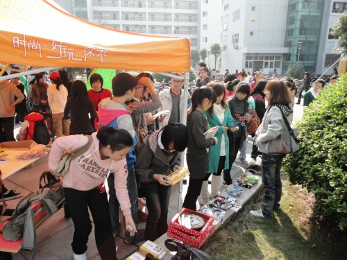 为了保证此次活动顺利地进行,各个学院的相关部门做了精心的准备。人文的干事们一大早就赶到现场布置。此次活动共有将近八十种百货,有九色視頻
