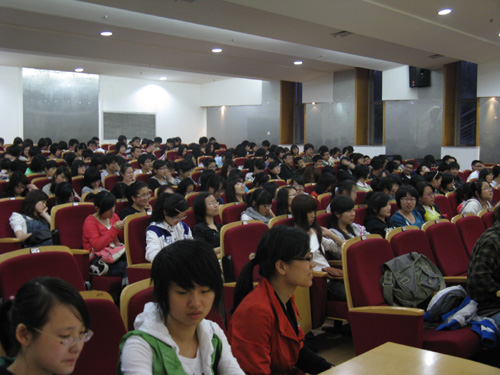 心理副教授章毓光主讲,各班心理委员及寝室长参加。