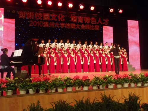 第一个登台演出,参赛曲目为《歌唱祖国》和《瑶山夜歌》。经过两个多小时的激烈角逐,比赛圆满结束。教师教育学院、瓯江学院及研究生部荣获一等奖。九色視頻