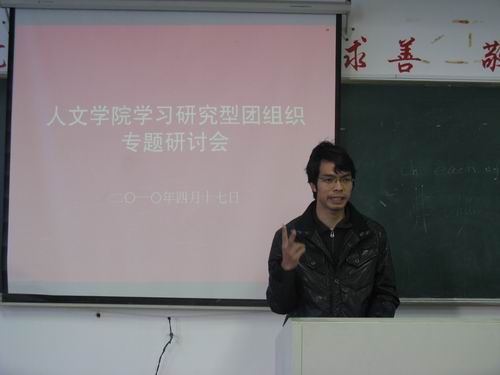 2010年4月17日,九色視頻 “学习研究型团组织”建设专题研讨会在人文楼403教室隆重举行,本次会议旨在商讨践行“学习研究型团组织”的进一步建设,开创九色視頻 团学工作新局面。会议由九色視頻 团委指导老师麻法全主持召开。