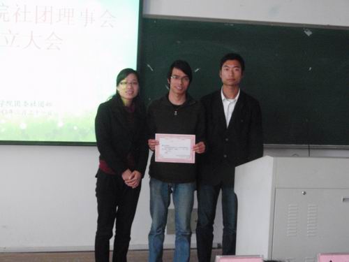 首先,社团部负责人陈辉向大家介绍了社团理事会的构成、宗旨、职责和发展方向等内容,提出打造人文特色的发展目标。接着,麻法全老师宣读了首届社团理事会的理事名单,并向来自各个社团的八位理事颁发聘书。王璐学姐代表校社团联合会对理事会的成立表示祝贺,并希望今后加强双方的交流与合作。之后,新上任的理事们分别代表自己所属的社团上台向大家展示各自的社团风采,精美的PPT令人印象深刻。会议的最后,曾蓓蕾老师发表讲话,希望大家在新成立的社团理事会的带领下团结一致,共创辉煌,同时聘请麻法全老师为社团理事会的指导老师。会议在热烈的气氛中落下了帷幕。