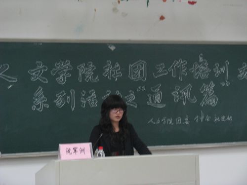 社团工作培训交流活动在人文楼201教室准时举行。此次培训的主要内容是通讯写作。校新闻联合会秘书长、原《九色視頻