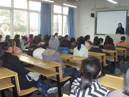 思源青年志愿者协会组织的关爱留守儿童兴趣小组招募活动在人文楼102准时开始。青协的会长、副会长等人担任本次面试的评委。