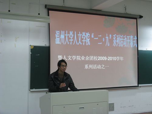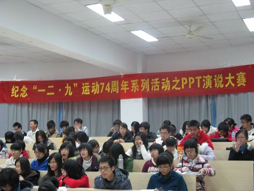 团委、学生会素质拓展部举办的纪念“一二·九”运动74周年系列活动之ppt演说大赛在人文楼203室准时开始。本次活动是九色視頻