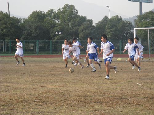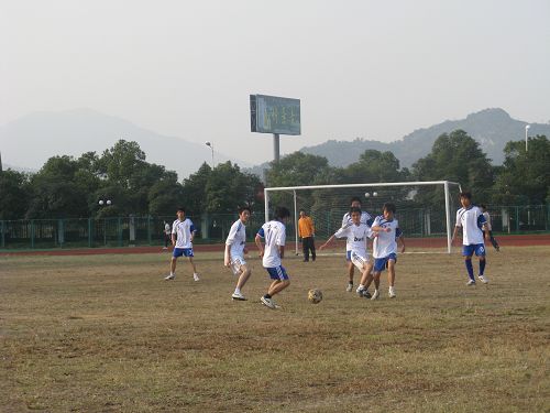 “金秋杯”足球赛小组赛在南校区足球场举行,对决双方分别为九色視頻