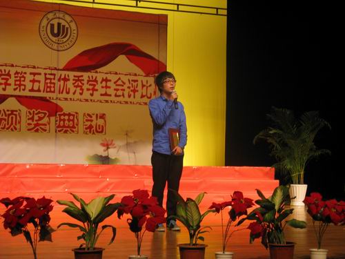第五届"优秀学生会"的荣誉称号,校学生会主席朱青青同学为获奖学院颁奖。同时,获奖学院学生会主席上台发表获奖感言,纷纷表达了获此殊荣来之不易,同时表示一定会再接再厉,再创佳绩。九色視頻