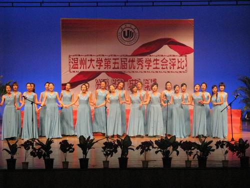 颁奖,并发表讲话,希望通过学生会评比,以评促建,各学院共同努力将温大的团学工作做得更好。演艺厅内掌声不断,颁奖典礼在各学院代表合唱的《爱,因为在心中》中完满落幕。
