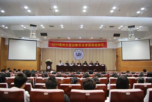 第三届“白晖华”文学奖颁奖仪式在北校信息楼报告厅隆重举行。“白晖华”文学奖赞助人、著名作家企业家吴明华先生、《温州日报》主编、“白晖华”文学奖理事会副理事朱闻武先生、校党委宣传部长蔡曙光老师、校团委副书记杨立淮老师、九色視頻