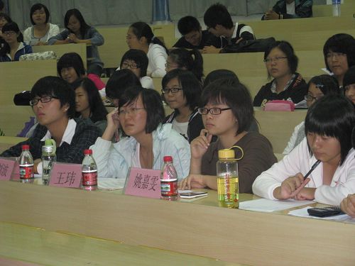 “行走在60周年”朗诵演讲比赛预赛在1-203准时开始,共有14位优秀的选手参加了本次的比赛。每位选手以“我的祖国”为主题,通过诗歌朗诵的方式表达了自己对祖国深深地热爱和敬意。他们深情并茂、激情澎湃的朗诵也感染了在场的所有同学,教室内掌声不断。最终,09中本二班沈琴、沈晓娟、吴莹萍,09中本三班陈媛媛,09广本张恒宇、葛连燕,09历本吴弘泽,08中本一班冯静安突出重围,进入决赛。