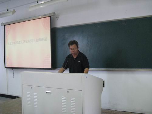 党总支书记周剑平老师致词。周书记首先对大会的召开表示热烈的祝贺,同时向出席本次大会的领导、嘉宾和团、学代表致以亲切的问候。周书记指出,学院党政一直高度重视团学工作,全院团学组织团结带领广大团员学生,在推进三大转型、创建和谐校园、提升办学水平等方面做出了积极的贡献。在肯定成绩的同时,周书记也向大会和广大团员、学生提出了几点希望和要求:一是全面贯彻落实科学发展观,建设和谐的校园环境;二是勤奋刻苦,不断成才;三是开拓进取,求实创新。周书记的讲话不仅鼓舞了士气,更能激励广大团员、学生进一步统一思想,求真务实,为学校和学院做出更大的贡献。