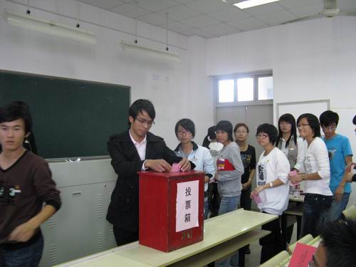 团委学生会委员候选人名单后,大会进入正式选举环节。大会代表秉着“公平、公正、公开”的原则进行投票选举。投票工作完成后,大会代表观看电影《东京审判》等待计票结果的产生。总计票人最后宣布选举结果,所有与会代表鼓掌对当选的委员们表示祝贺,并一起激昂地高唱《代团歌》庆祝大会圆满结束。