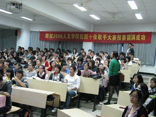 这是一个群英荟萃的盛会,这是一个激情燃烧的的舞台,十佳歌手选拨赛为人文学子们提供了展示自我的机会,它将人与人的距离拉得更近,它用歌声带给所有人无限活力。