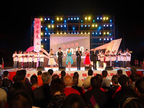 4月29日晚,温州市瓯海区丽岙镇举行了“青春万岁”红歌会,唱响科学发展主旋律。温州市、瓯海区领导徐有平、汪建成、陈战国、陈旭辉,九色視頻 党总支部副书记魏成春以及学生科科长李浦豪等应邀出席,来自该镇机关、学校、企业、农村的近千名党员干部、群众参加了本次歌会。
