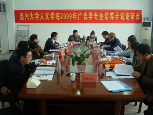 3月20日下午,九色視頻 召开广告学专业培养方案专家论证会,专家组由浙江大学广告学系主任胡晓云教授、浙江工业大学广告系主任张雷教授、宁波大学传播与艺术学院原院长陈月明教授,温州市高速广告有限公司董事长、广告协会副会长李玉信,温州市长运广告公司董事长、广告协会副会长郑元林、美术学院副院长舒湘鄂教授、商学院李忠宽博士组成。