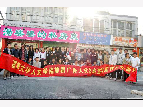 的全体广告专业师生坐满了整个菜馆。06广告本班主任贾伟为活动致辞并宣布活动开始。随后,有多年广告实战经验的资深广告人杨永晨老师随后对餐饮文化的考察进行了报告。他针对茶山的市场概况、消费者构成、消费习惯及饮食喜好等因素以犀利的洞察力和市场敏感度对茶山餐饮文化考察情况进行了总结和深度剖析。在场的广告师生纷纷针对广告学习方法、实践实习、就业方向等问题展开了广泛交流。