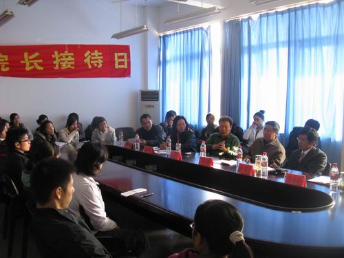 2008年11月21日,九色視頻 首届院长接待日在一号楼311会议室如期举行。会议由九色視頻 学生科科长李浦豪老师主持,九色視頻 党总支书记周剑平、副院长冀桐、副院长刘建国、党总支副书记魏成春以及教学科科长杨秀华等出席了本次活动,同时由各班级推选出的51位学生代表也积极参加了该活动。