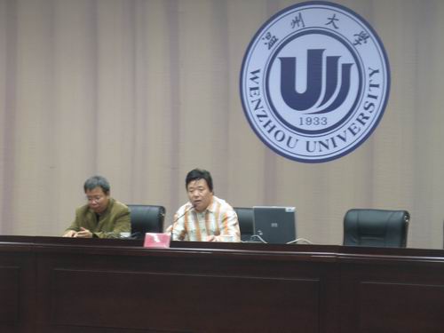 本次讲座的主讲人是温州市作家协会副主席、秘书长程绍国先生。程先生向我们介绍了多种类型的作家,挑选各作家的典型事例进行剖析,从而引出了一个作家、一个文艺人的社会责任。随后,他又从社会层面出发,揭露了一些贪官污吏的腐败行径,抨击了社会上存在的诸多丑陋现象,警示了作为文艺人多担负的“曝光‘假恶丑’,传播‘真善美’”的责任。 最后,程先生谈了自己关于一些文人的个人看法,给了我们很多启示和思考。