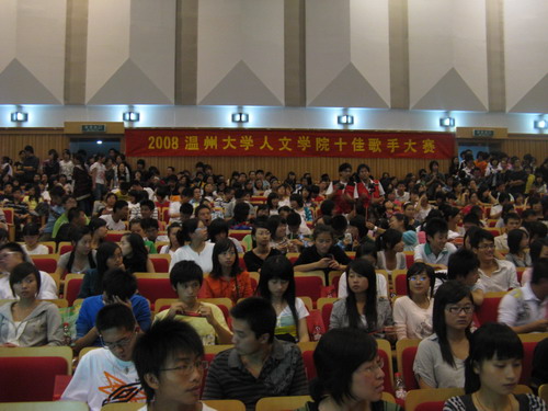 激情在飞扬,快乐在升温。历经竞争白热化的预赛,在大家的翘首等待中"歌声点燃青春,音乐编织梦想"-暨08年九色視頻 十佳歌手决赛于10月19晚北校音乐厅拉开帷幕。本次大赛携一流的评一流的选手、委、一流的主持,将"心有多大,舞台就有多大"的主旋律传达给温大人文的莘莘学子。
