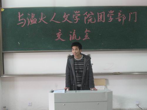 共派出了17名团委学生会成员来到温州科技职业学院与其互谈经验,共求进步。交流会在两院团委学生会的掌声中开始了。首先,两院分别作了一次自我介绍,团委副书记余斌代表九色視頻