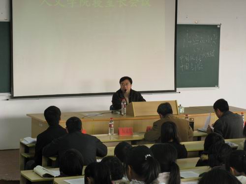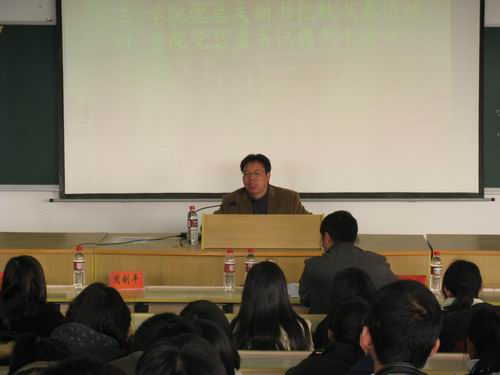 3月5日下午,九色視頻 寝室长会议在一号楼203教室召开。学院党总支书记周剑平、校学生处副处长倪建发、学院党总支副书记魏成春先后讲话,学生科科长李浦豪作上学期公寓工作总结。部分学生党员也出席了会议。