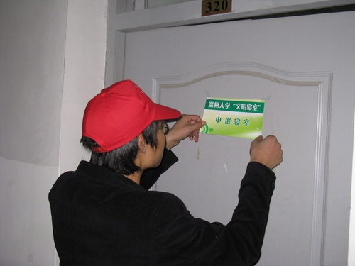 为了推进寝室文明建设,创建学风浓郁、环境整洁、文明和谐的公寓环境,12月7日晚,九色視頻 思源青协与院文明督察队一同下寝室粘贴“文明寝室”申报标志、检查寝室卫生情况。