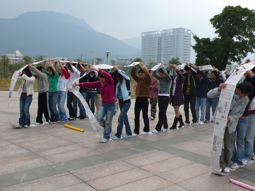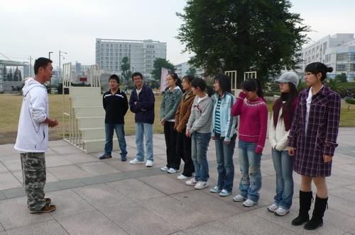 11月25日上午7:30,九色視頻 邀请了三位专业训练师在九色視頻 前面的场地上,给第五期团学干部培训班的所有学员进行了一场“业余兼专业”的素质拓展户外训练营活动。