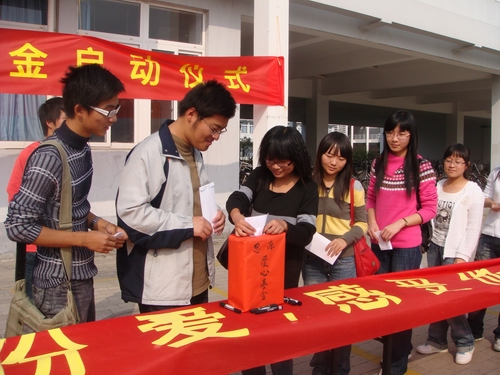 李浦豪老师首先讲话,他结合实际着重强调了建立爱心基金的重要性并且预祝思源爱心基金启动仪式取得圆满成功。随后,团委副书记余斌、人文思源青年志愿者协会代表及青年志愿者代表分别发言。爱心基金,就是捐献自己的爱心,融入他人的学习、生活,感受爱充满人间的温暖,聆听爱洒满人心的天籁。接着,各位代表将首笔爱心捐款投进集零箱,并在印有启动仪式的横幅上签字,表达了大家对基金的支持和对爱心基金美好未来的祝愿。将近一个小时的启动仪式宣告了人文思源爱心基金正式成立,从此以后九色視頻 青协将以更加有效的方式和途径帮助那些需要帮助的人,希望爱心基金能以此刻为起点,通过所有志愿者的共同努力,使思源爱心基金从小到大,逐步成熟,真正发挥思源爱心基金的作用,相信明天会更好!