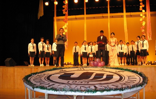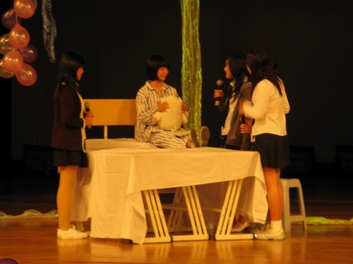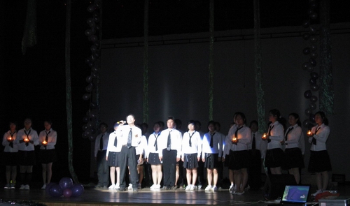 生命无情,人有情。紧接着,话剧《小品剧》真实重现了04中本3班的全体同学在得知这一噩耗后纷纷为袁卡凤同学筹集爱心款而四处奔波的情景,并用DV纪录了全班对袁卡凤同学的鼓励。袁卡凤同学的故事深深打动了现场观看的每一个人,爱的旋律在心底奏响。最后的大合唱《感恩的心》、《明天会更好》则将整场演出推向高潮。烛光中,祈祷和希望一起闪动。演出最后,校领导叶朝阳发表讲话,非常感谢04中本(3)班全体同学这次爱的演出,为全体师生上了一堂非常有意义的关于爱的课。他表示,我们不仅要在物质上支持袁卡凤同学,更要在精神上不断鼓舞她勇敢战胜病魔,并祝愿她早日恢复健康。